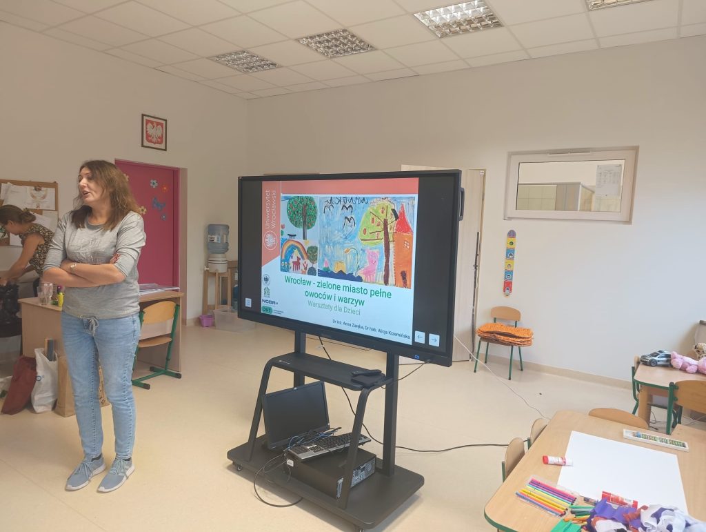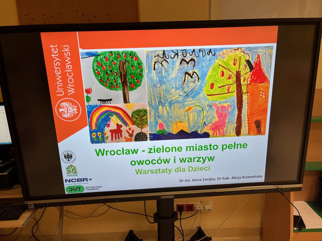 On October 29, 2024, another workshop of our team took place under the theme “Wrocław – a green city full of fruits and vegetables.” This time, the FOCUSE team visited Kindergarten No. 51 “Kolorowy Początek” in Wrocław. During the workshop, three groups of young children, aged 4 and 5, drew their vision of how Wrocław should look with edible plants growing throughout the city. The children presented their designs for a greener Wrocław. The creative workshop was preceded by a 15-minute presentation in which FOCUSE team members, Dr. Eng. Anna Zaręba and Dr. Hab. Alicja Krzemińska, explained to the children how edible plants can be cultivated in urban settings.